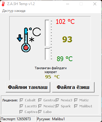Ушбу дастур барча турдаги Chevrolet автомобиллари двигатели совутиш тизими вентеляторини ишлаш температурасини ўзгартириш имконини беради. Қуйида модул нархлари билан танишишингиз мумкун.