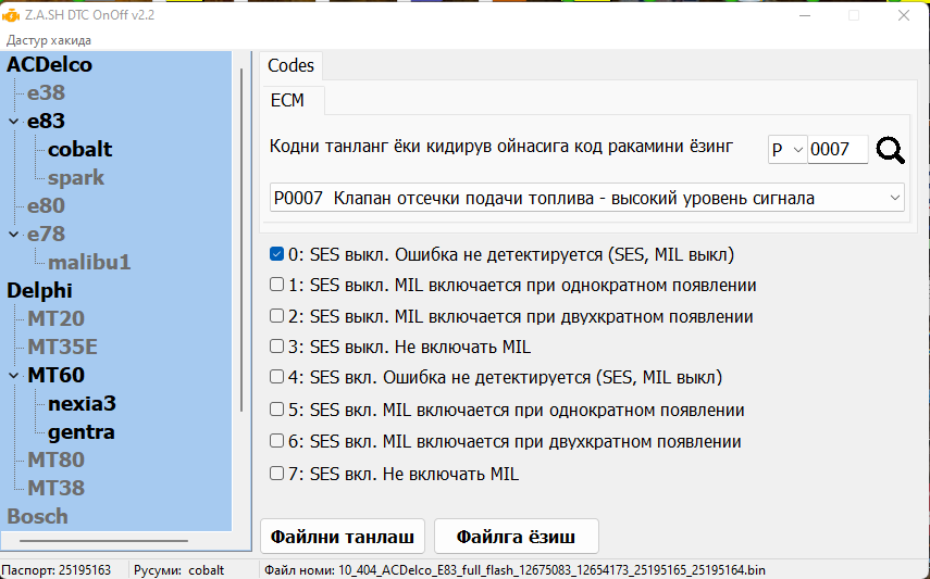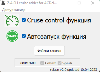 Ушбу дастур AcDelco e83 модули жойлашган Chevrolet Cobalt ва Chevrolet Spark автомобиллари двигатели мия қисмига автоматик двигателни юргазиш ва круиз контрол тезликни бир меёрда ушлаб кетиш функцияларини қўшиб беради. Қуйида модул нархлари билан танишишингиз мумкун.